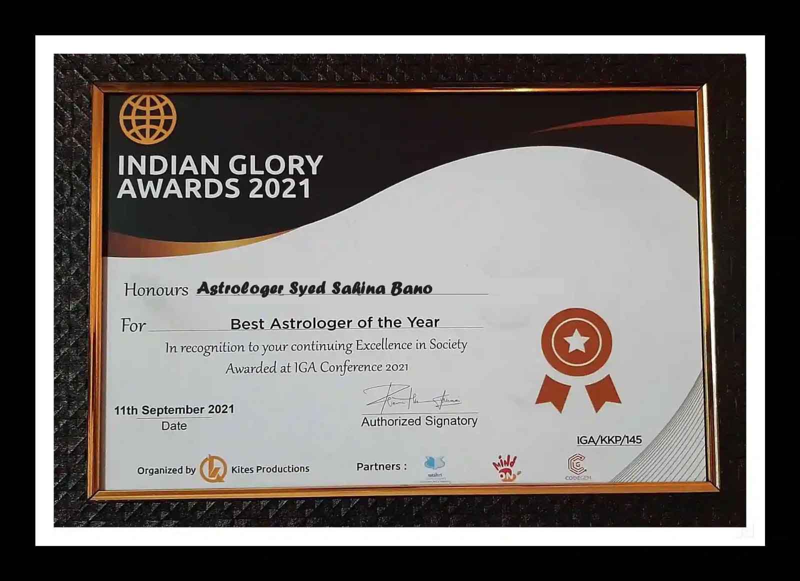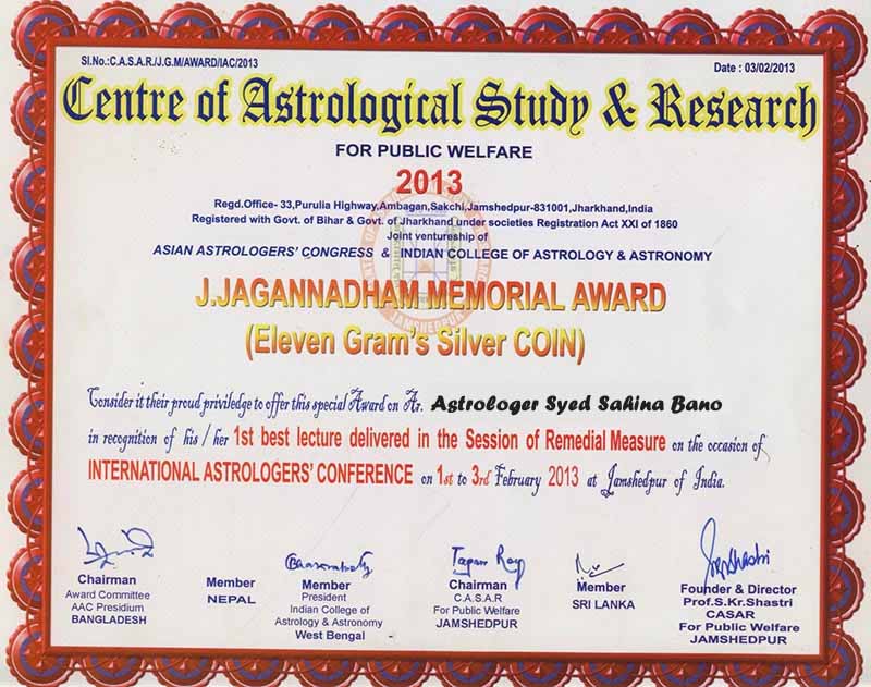 Astrologer Syed Sahina Bano is win awards the best astrologer in India